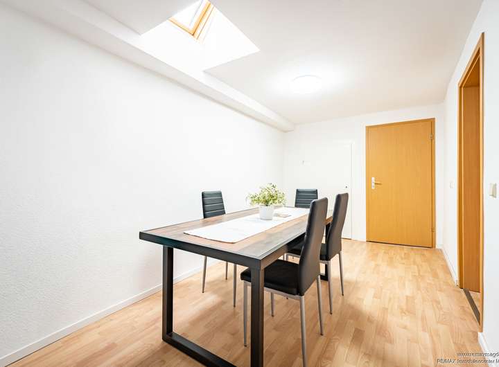 Im Dachgeschoss befinden sich die Wohneinheiten 3 und 4 befinden. Die kompakte mit ca. 37m² große Wohneinheit 3, aufgeteilt in ein Wohnzimmer, Küche und Tageslichtbad, eignet sich ideal für Einzelpersonen oder Pendler.