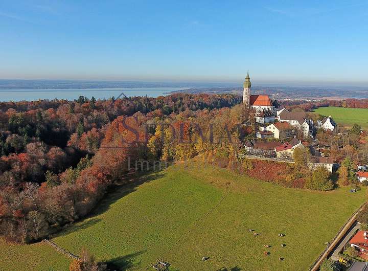 Die Grundstück befindet sich in der Gemeinde Andechs, im Ortsteil Erling, im schönen Fünfseenland. Weltbekannt ist die Wallfahrtskirche mit dem Benediktinerkloster, dem Bräustüberl und dem beliebten Andechser Bier.