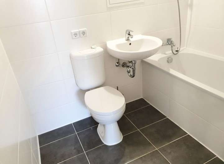 - Bad mit Badewanne, Waschmaschinenanschluss und Handtuchwärmer
