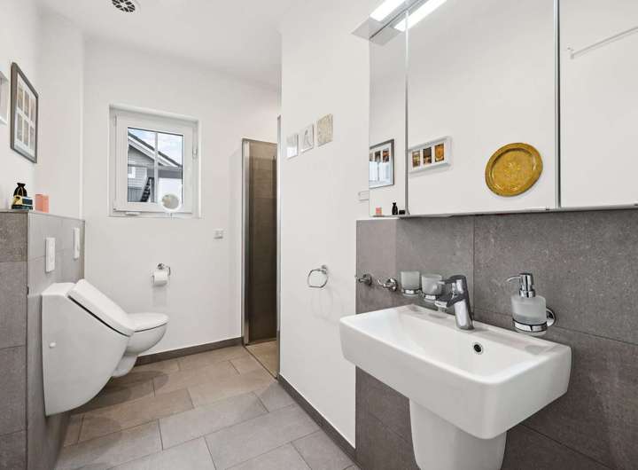 Im gesamten Haus sorgt eine Fußbodenheizung für angenehme Wärme und ein ruhiges, reduziertes Wohnbild.