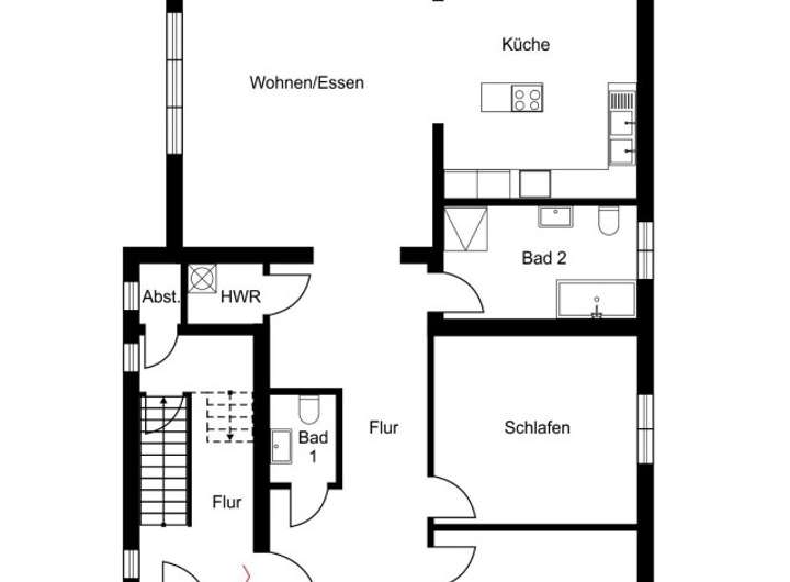 Ein Hauswirtschaftsraum mit Waschmaschinenanschluss in der Wohnung, ein Abstellraum auf halber Treppe im Hausflur sowie ein Kellerabteil bieten reichlich Stauraum. Hochwertiges Stäbchenparkett und Designvinyl unterstreichen den wertigen Gesamteindruck. Zwei Stellplätze können optional für je 40 € monatlich angemietet werden. Dank schnellem Internet (bis 1000 Mbit/s) und Datendosen in jedem Zimmer ist die Wohnung auch ideal für Homeoffice-Nutzer.