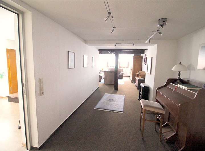 Das geräumige Wohnhaus hält mit ca. 355 qm Wohnfläche Platz für drei Familien, ein Apartment-Gästehaus mit Terrasse sowie eine Gewerbefläche auf zwei Ebenen von ca. 223 qm bereit.
