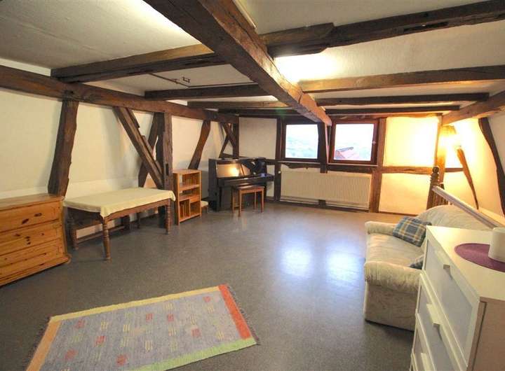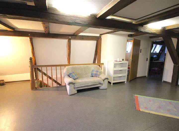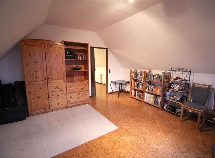 Der ausgebaute Dachboden verfügt über einen großen Wohnbereich mit angrenzendem Duschbad und Toilette sowie zwei weiteren Zimmern. Vom Wohnbereich erreichen Sie den Spitzboden, der sich zusätzlich zu Lagerzwecken eignet.