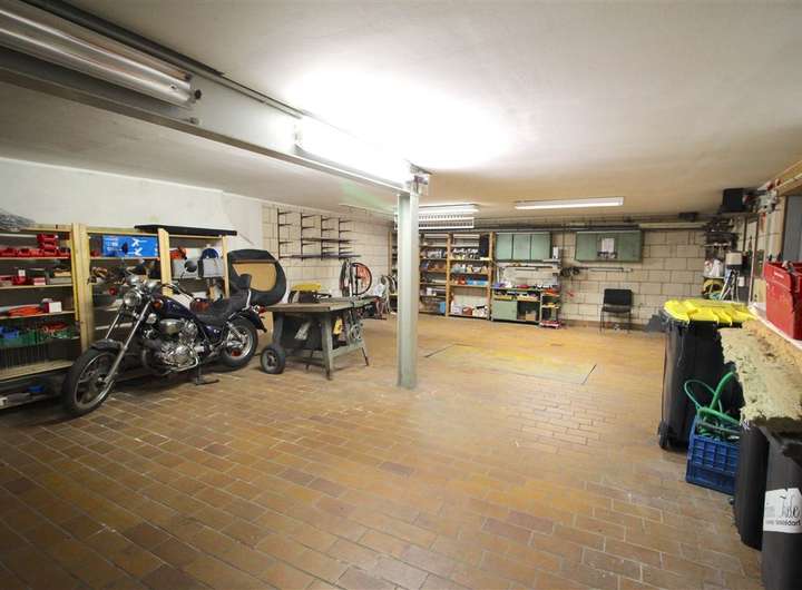 In der Kellerebene gelangen Sie in einen kleinen Weinkeller sowie in die große Garage mit Werkstatt und Lagerfläche. Die Garage ist über eine Seitenzufahrt zu erreichen. Das Garagentor ist elektrisch.