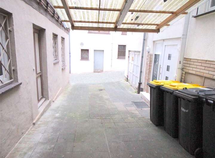 Das Wohn- und Geschäftshaus ist voll unterkellert und bietet mit rückseitigem Zugang einen Garagenstellplatz. Ein Pkw könnte zusätzlich vor der Garage überdacht untergestellt werden.