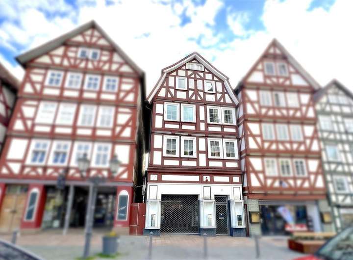3 Wohnungen oder 5 Apartments: Wohnhaus möbliert, mit Gewerbefläche am Marktplatz in Homberg (Efze)