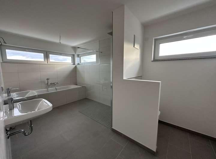 - Hauptbad im Obergeschoss mit offener Dusche inkl. Ganzglasabtrennung