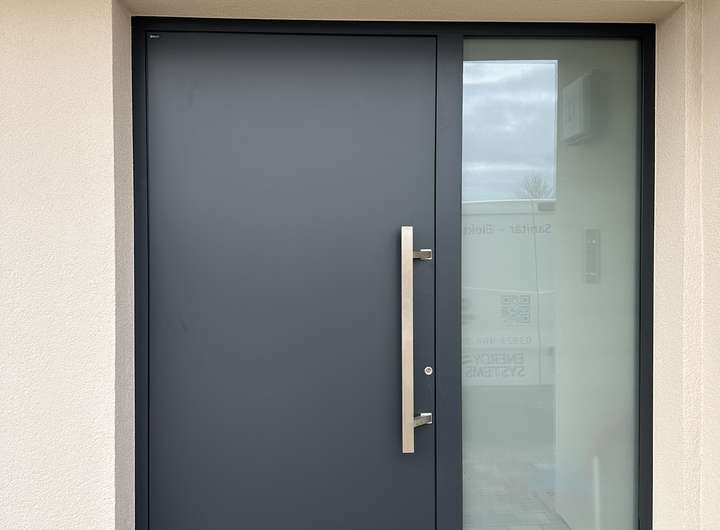 - Hochwertige Aluminium-Haustür mit Milchglas-Seitenfenster