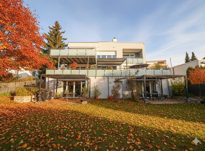 Das Gebäude wurde 1972 errichtet und zwischen 2011 und 2019 umfassend und mit höchstem Qualitätsanspruch totalsaniert. Seither präsentiert es sich in einem neuwertigen Zustand, der keinerlei Investitionsstau erkennen lässt. Mit einer Gesamtwohnfläche von rund 460 m², aufgeteilt in drei Sondereigentumsanteile sowie zwei zusätzliche Einliegerwohnungen, eröffnet die Immobilie flexible Nutzungsmöglichkeiten – ob als renditestarke Kapitalanlage oder zur Eigennutzung mit Mehrwert.