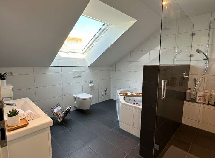 DG: Walk-in-Dusche, Eckbadewanne, Waschmaschinenanschluss