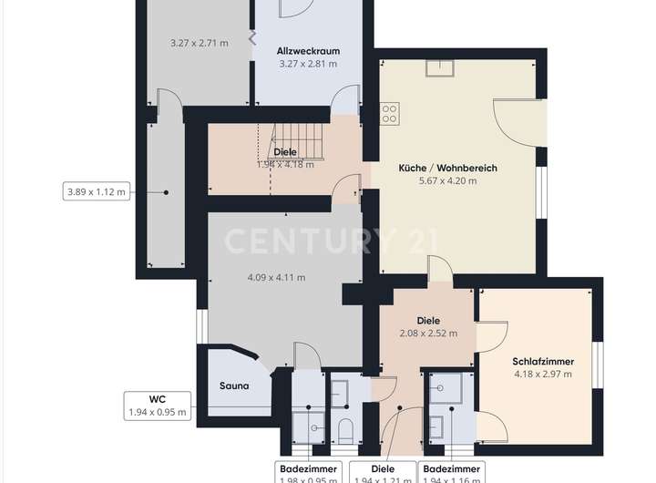 + Bodenbeläge: überwiegend Fliesen