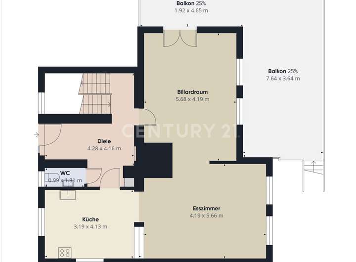 + Balkon EG: ca. 45 m², WPC - Bodenbelag und Geländer erneuert