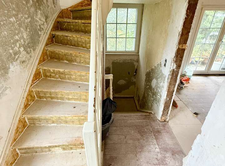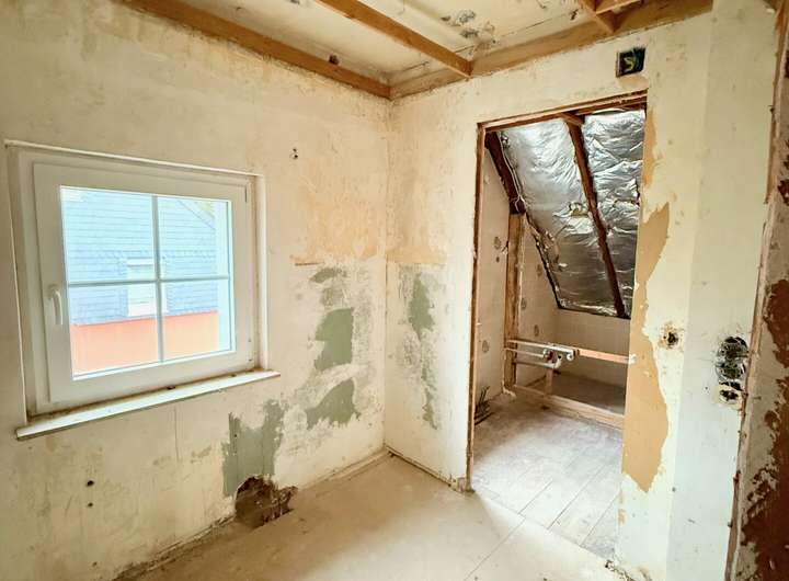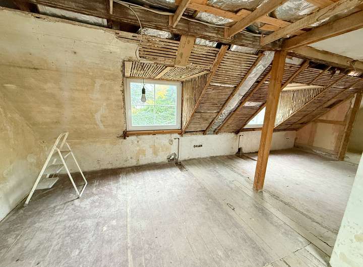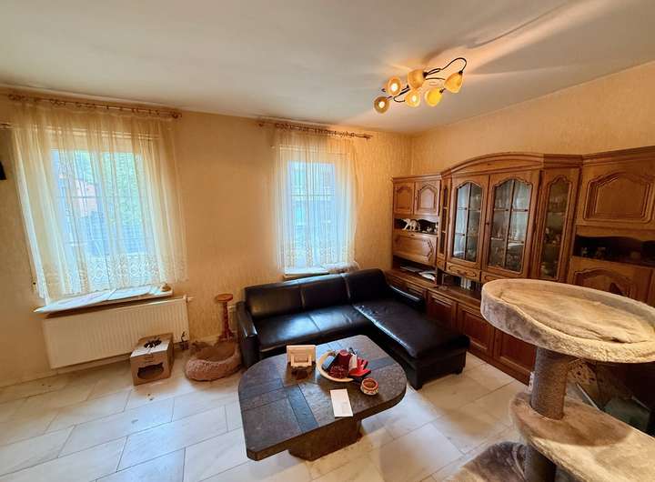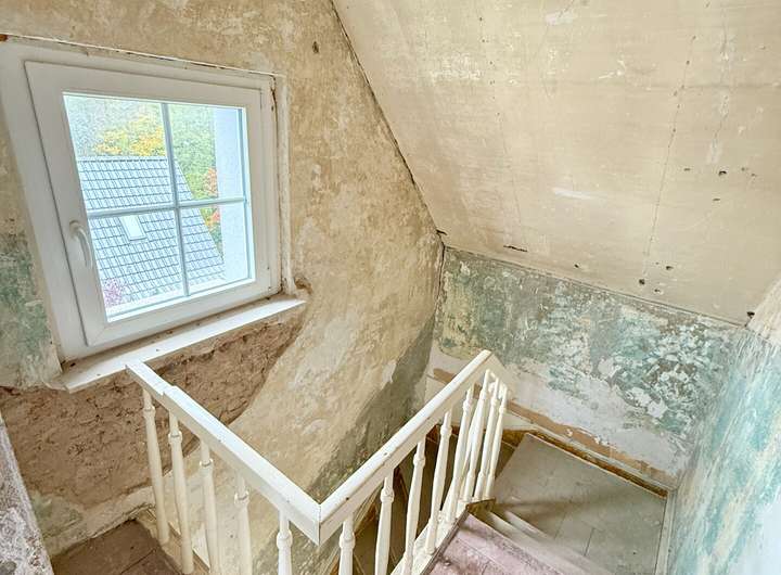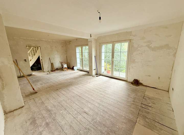 Im Inneren zeigt sich das Haus renovierungsbedürftig, insbesondere im Innenausbau. Jedoch wurde bereits ein großer Teil der Bäder, Wasserleitungen und Elektrik modernisiert, was den Einstieg in die Renovierung erleichtert. Ein besonderes Highlight ist der teilweise wohnlich ausgebaute Keller, der mit einem praktischen Aufzug vom Erdgeschoss aus erreichbar ist und zusätzliche Nutzfläche von ca. 120 m² bietet.