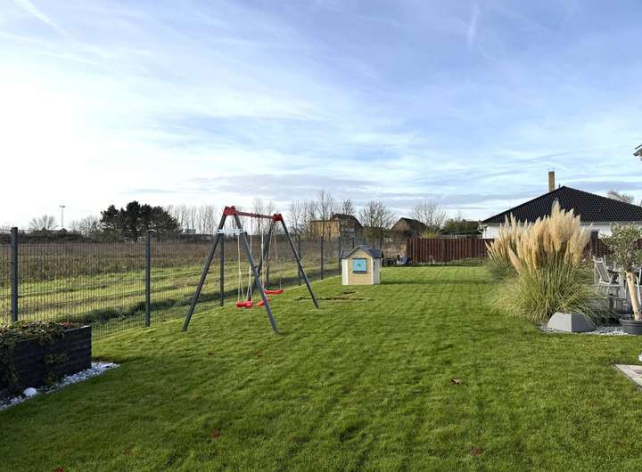 • Große Terrasse, gepflegter Garten, vollständig eingezäunt und ideal für Familien