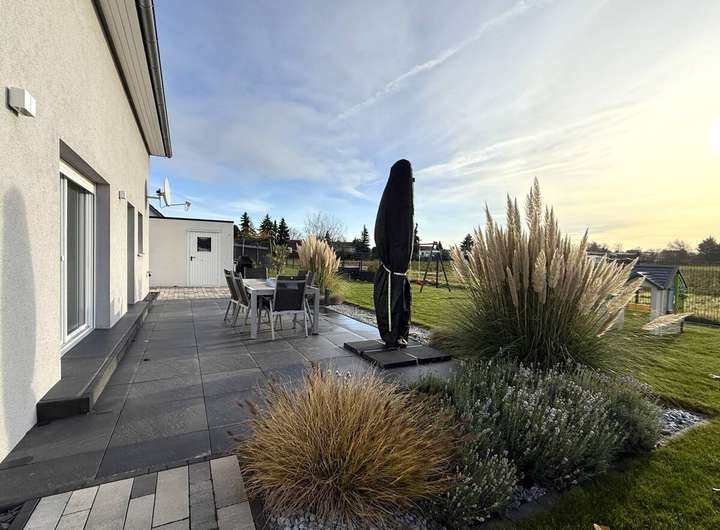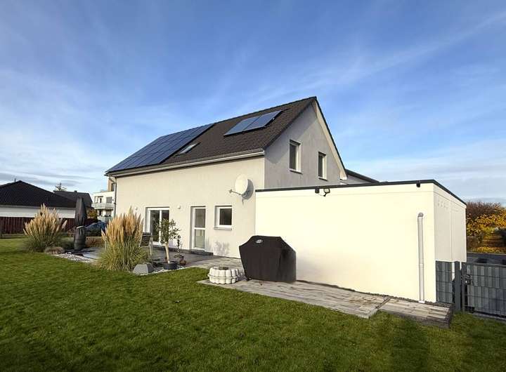 Modernes Wohnen in Toplage von Brehna – energieeffizientes Einfamilienhaus von 2019 mit Doppelgarage, PV-Anlage & gepflegtem Garten