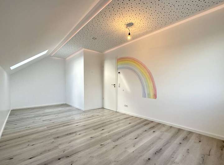 - Dachschrägen: mit Gipskartonplatten 12,5 mm beplankt, Zwischensparrendämmung mit