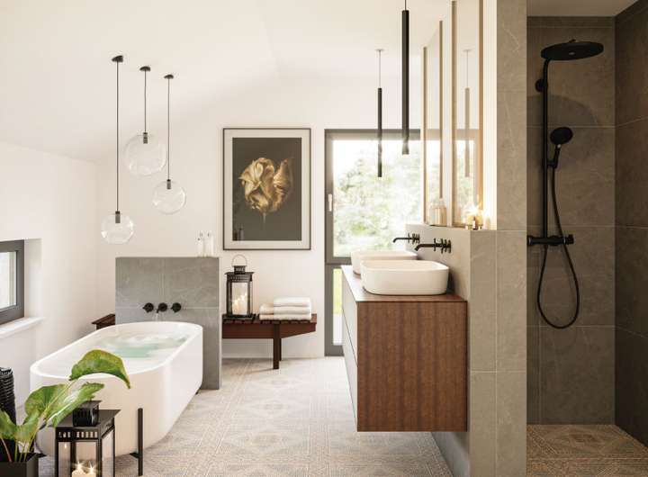 - Sanitär-Objekte von Markenherstellern wie z. B. Villeroy & Boch usw. sowie Echtglas-Duschabtrennung