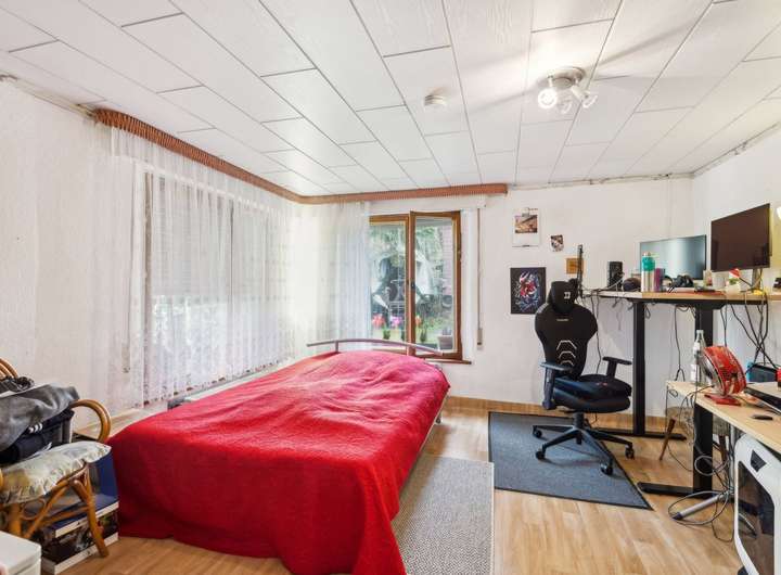 Das Nebengelass bietet zusätzlichen Stauraum. Auf dem Grundstück befindet sich Platz für mindestens zwei PKW-Stellplätze.
