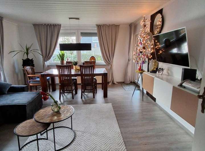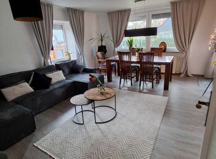 Helle Wohnräume mit Laminat- und Fliesenböden