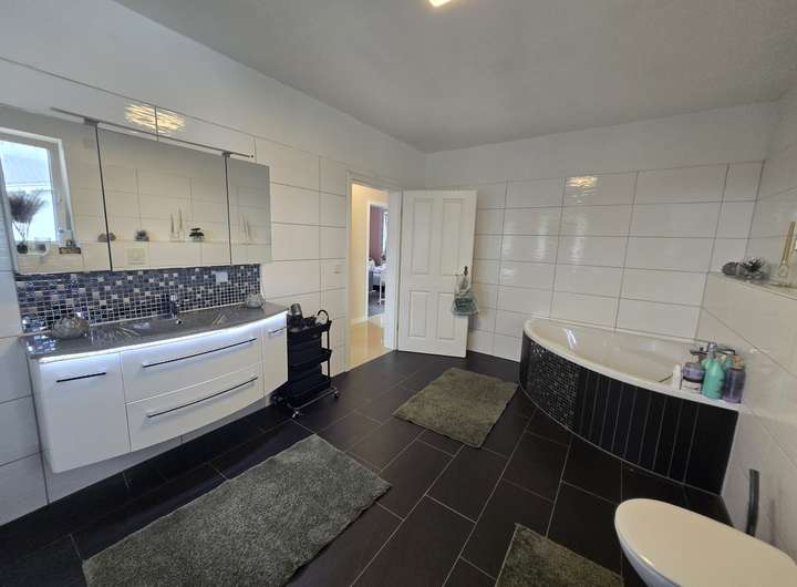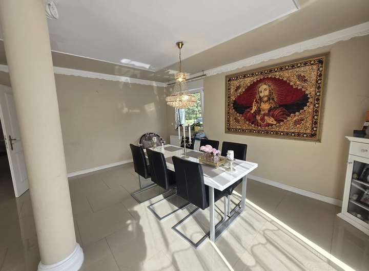 Willkommen in Ihrem neuen Zuhause! Dieses massiv gebaute Einfamilienhaus bietet rund 160 m² Wohnfläche, eine großzügige Terrasse, einen idyllischen Garten und eine Doppelgarage mit elektrischem Tor – perfekt für Komfort und Alltag.