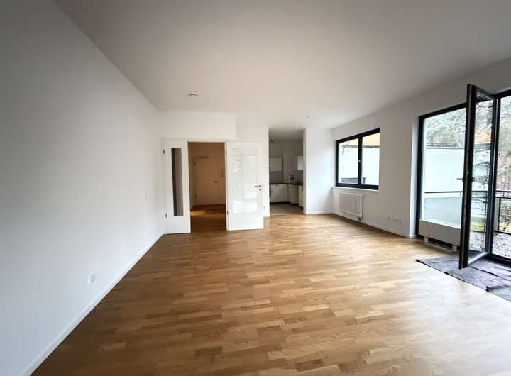Die großzügig geschnittene Wohnung liegt im 1. Obergeschoss und überzeugt durch eine durchdachte Grundrissgestaltung sowie helle und freundliche Wohnräume. Der lichtdurchflutete Wohn- und Essbereich (ca. 32m²) bildet das Herzstück der Wohnung: Großflächige Fenster lassen viel Tageslicht herein und schaffen eine angenehme Wohnatmosphäre. Der Parkettfußboden, der sich durch sämtliche Wohnräume zieht, sorgt für ein warmes, harmonisches Ambiente.