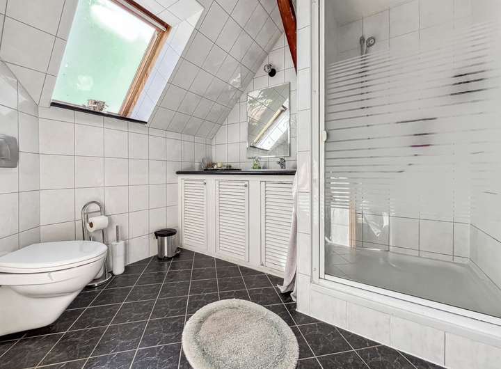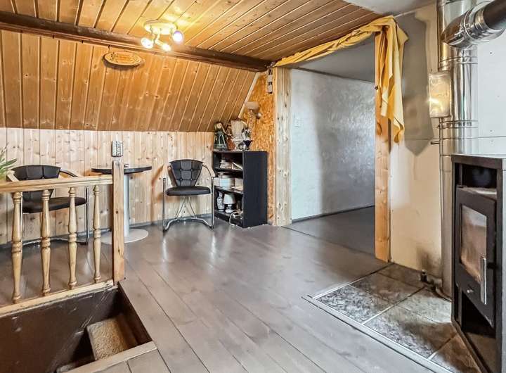 Beim Betreten des Hauses empfängt Sie ein weitläufiger Flur, der zentralen Zugang zu allen Räumen im Erdgeschoss gewährt. Hier befinden sich eine Küche mit integriertem Essbereich, ein gemütliches Wohnzimmer, ein Schlafzimmer sowie ein Badezimmer mit Badewanne – ideal für entspannte Momente. Der gut erhaltene Treppenaufgang aus Holz führt in das Obergeschoss, das durch seine durchdachte Raumaufteilung überzeugt. Ein großer Flur mit integriertem Sitzbereich und Kamin schafft eine behagliche Atmosphäre. Von hier aus gelangen Sie in einen weitläufigen Gemeinschaftsraum, eine zweite Küche – ebenfalls mit Essbereich und ideal für Gäste oder als separate Wohneinheit – sowie ein weiteres Schlafzimmer bzw. Gästezimmer. Abgerundet wird das Raumangebot durch ein modernes Badezimmer mit Dusche.