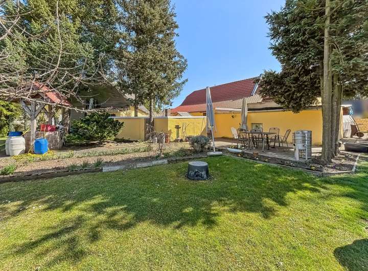 Dieses charmante Einfamilienhaus ca. aus dem Jahr 1914 befindet sich auf einem großzügigen Grundstück von ca. 1.889 m² und bietet mit ca. 150 m² Wohnfläche reichlich Platz für Familien, Naturliebhaber oder Menschen mit Sinn für historische Bausubstanz. Umgeben von einem großen Garten mit gepflegten Rasenflächen, liebevoll angelegten Rabatten und einer einladenden Terrasse, ist das Haus ein echtes Refugium der Ruhe. Zwei Garagen sowie ein zusätzlicher Schuppen bieten praktischen Stauraum und Platz für Fahrzeuge, Gartengeräte oder Hobbyprojekte.