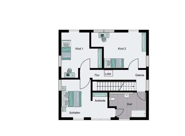 Die abgebildeten Hausentwürfe sind Gestaltungsvorschläge. Eine Vielzahl individueller Anpassungen wie z. B. Hausgröße, Dachgeometrie, Fenstergrößen und deren Position sind möglich.