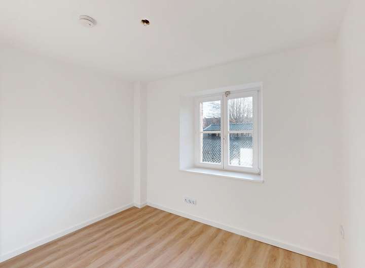 Über den Flur gelangt man schließlich in die oberste Etage des Hauses. Auch hier zeigt sich der besondere Charakter der Immobilie: Sichtbare Holzbalken erinnern an die lange Geschichte des Hauses und schaffen ein warmes, authentisches Ambiente. Der großzügige Flur bietet reichlich Platz für Stauraum oder kreative Nutzungsmöglichkeiten. Zusätzlich stehen zwei weitere Räume zur Verfügung, die sich ideal als Hobbybereich, Gästezimmer oder Abstellflächen eignen.