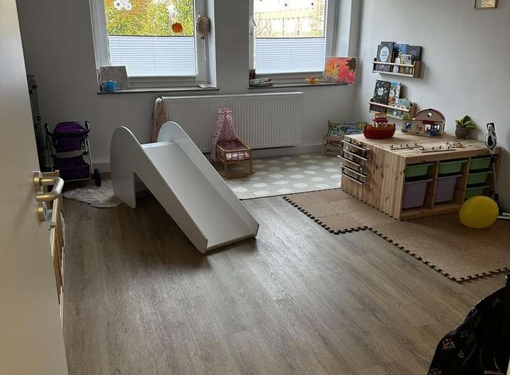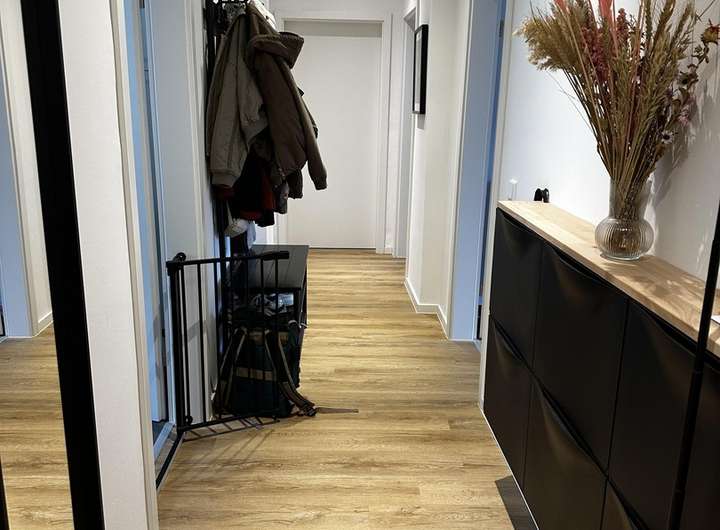 Da sich die Wohnung derzeit in Sanierung befindet, werden beispielhafte Bilder von einer Wohnung in einer anderen Etage, welche den gleichen Grundriss aufweist verwendet. Entsprechend könnte der tatsächliche endzustand minimal abweichen sein,