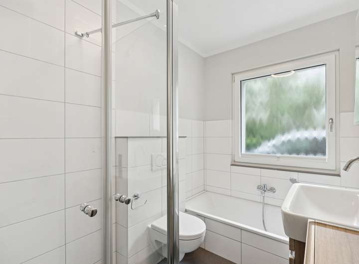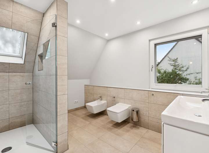 * Großzügiges Duschbad im Obergeschoss mit Doppelwaschtisch & XL-Dusche