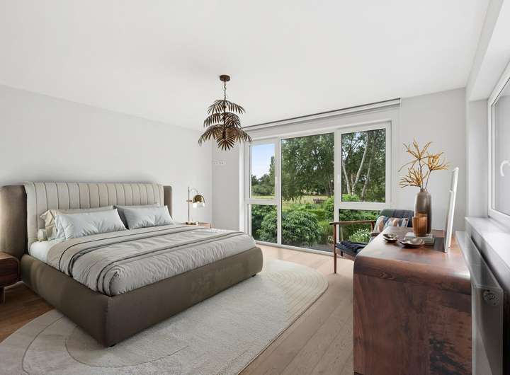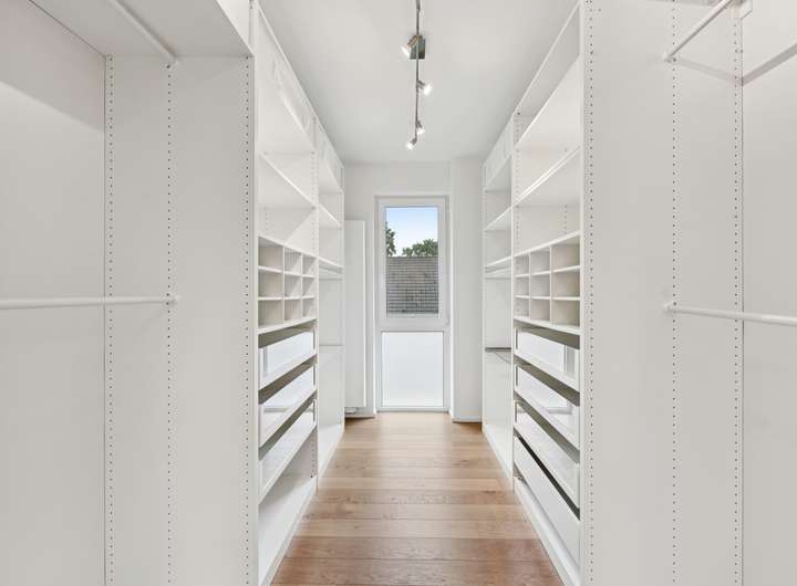 Das Obergeschoss überzeugt mit zwei großen und einem kleineren Schlafzimmer, einem begehbaren Ankleidebereich und einem komfortablen Badezimmer mit großzügiger Dusche und Doppelwaschtisch.