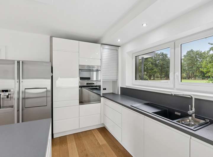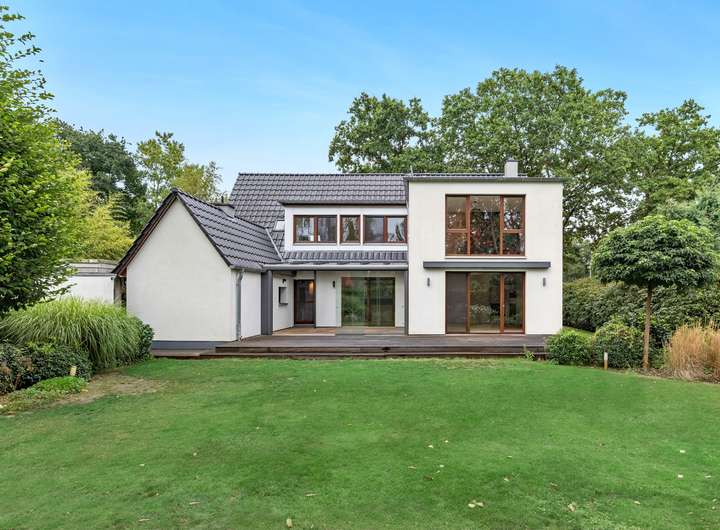 Das Ergebnis ist ein harmonisches Zusammenspiel aus moderner Wohnqualität, hochwertigen Materialien und einem außergewöhnlichen Grundstück, das eine nahezu uneinsehbare Privatsphäre bietet.