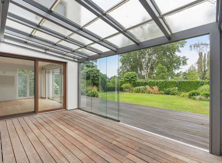 * Wintergarten mit elektrisch steuerbarem Glasdach & Schiebetüren