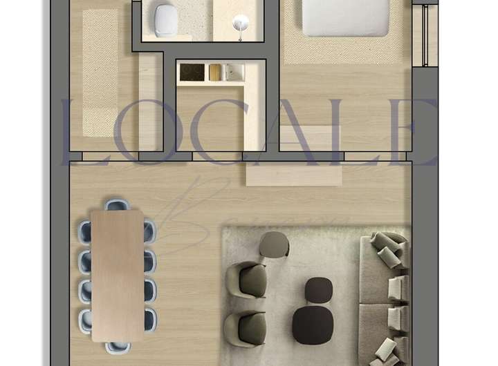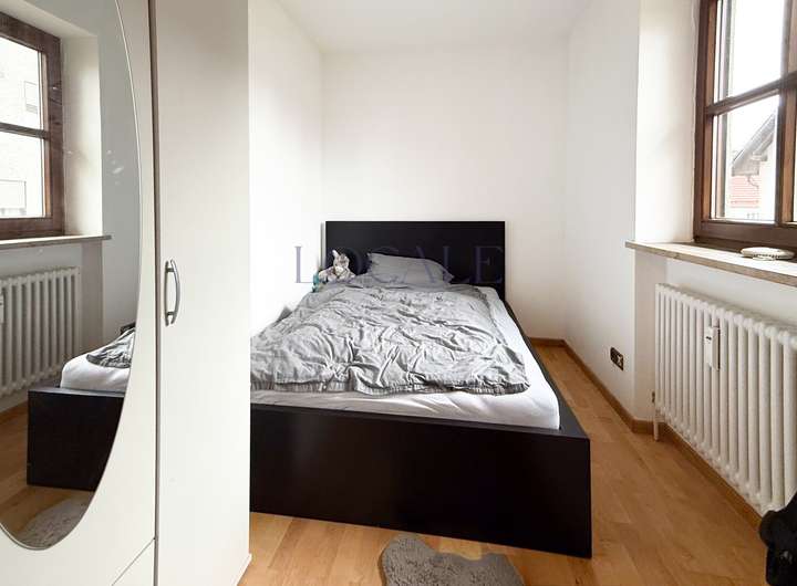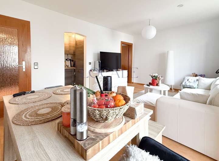 Der Wohnbereich wirkt offen und einladend und lässt sich gemütlich einrichten. Vom Wohnzimmer aus gelangst du direkt auf den Balkon, ideal für einen entspannten Start in den Tag oder einen Moment frische Luft am Abend. Das Schlafzimmer bietet Platz für ein großes Bett und einen Kleiderschrank.