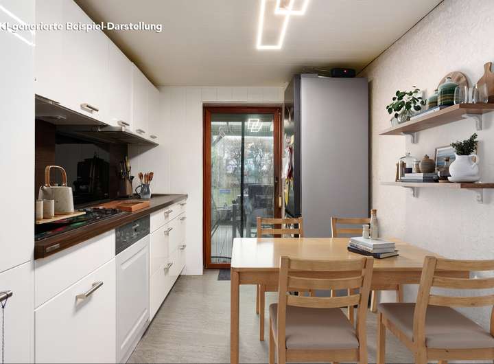 • Moderne Einbauküche mit Zugang zur überdachten Terrasse