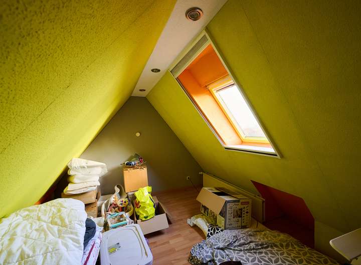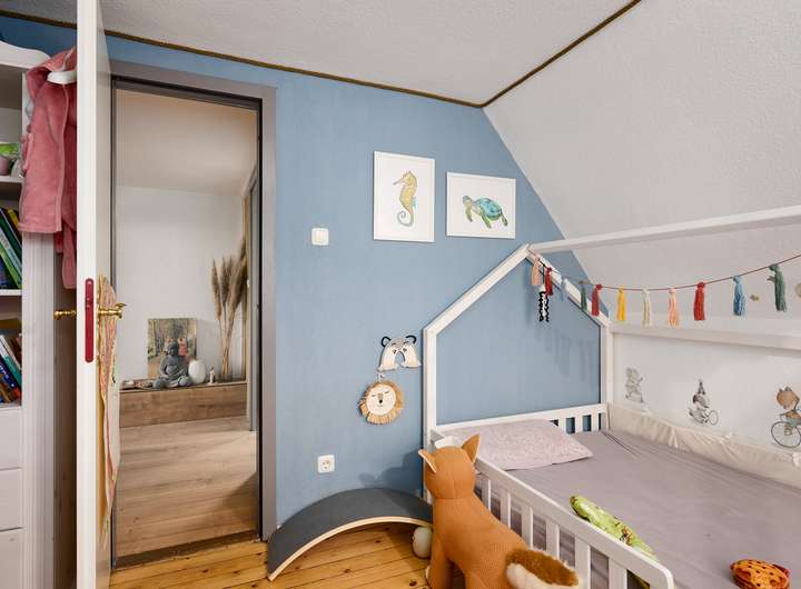 • Kinderzimmer im Dachgeschoss mit Treppe in den ausgebauten Spitzboden