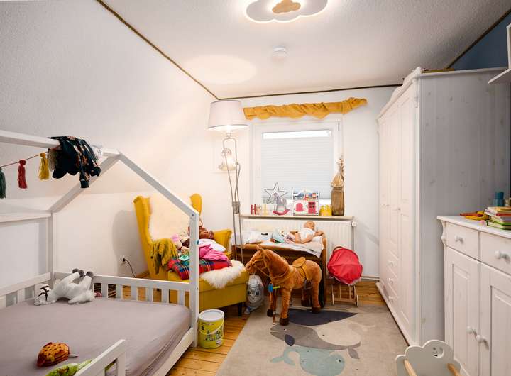 • Weiteres Kinderzimmer im Obergeschoss mit Wannenbad