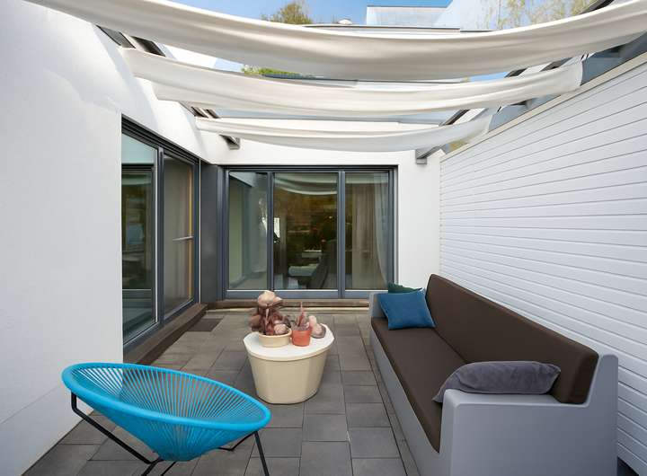 Dieses außergewöhnliche Haus folgt der Idee, einen Ort der Geborgenheit zu schaffen – ein Zuhause, das sich nach innen wendet und den familiären Zusammenhalt in den Mittelpunkt stellt. Inspiriert von der mediterranen Baukunst, erinnert das Konzept an das klassische Innenhofhaus, bei dem das Leben um einen zentralen, lichtdurchfluteten Raum kreist. Herzstück des Hauses ist die großzügige, glasüberdachte Wohnhalle, die zugleich Rückzugsort und Treffpunkt ist – ein Ort, an dem sich das Familienleben sammelt, geschützt vor der Hektik der Außenwelt.