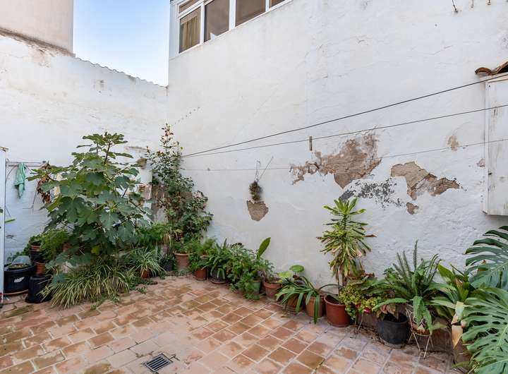 Vom Esszimmer aus gelangt man zu zwei weiteren, gut dimensionierten Schlafzimmern, einem Badezimmer, der Küche mit angrenzendem Abstellraum und einem charmanten, gefliesten Innenhof.