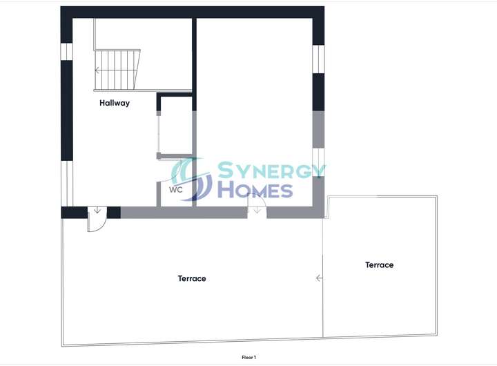 Im Obergeschoss befinden sich ein kleiner Büroraum und eine separate Toilette. Die großzügige obere Terrasse bietet Zugang zu einem weiteren Raum, der leicht in ein zusätzliches Schlafzimmer, ein Studio oder einen Hobbyraum umgewandelt werden könnte.