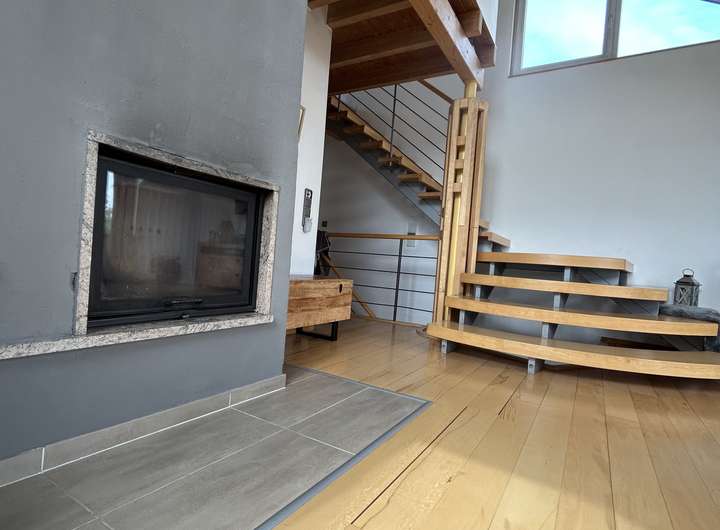 Die moderne Wohnung mit ca. 124 m² Wohnfläche überzeugt durch hochwertige Ausstattung und toller Lage. Sie verfügt über einen separaten Eingang, einen großzügigen Wohnbereich mit wärmespeicherndem Kamin sowie eine Einbauküche mit Herd, Backofen und Spülmaschine , mit angrenzendem Essbereich und direkten Zugang zur Terrasse.