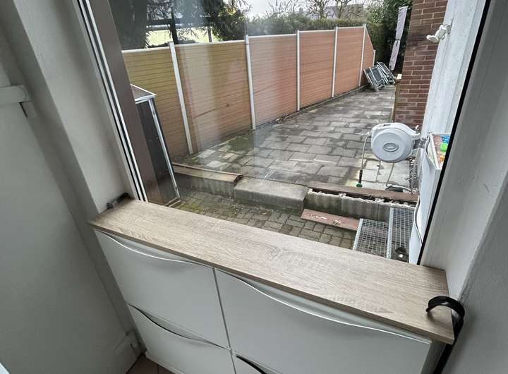 Zur Wohnung gehören eine Terrasse, ein Dachboden sowie eine geschlossene Abstellmöglichkeit für Fahrräder.