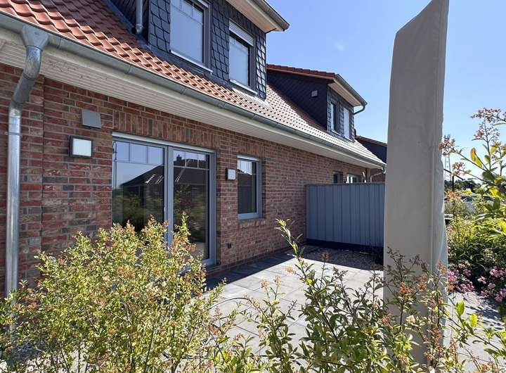 In einer neuen Wohnsiedlung in Drage wurde diese moderne und sonnige Doppelhaushälfte erbaut. Mit großer Genauigkeit im Detail der Innengestaltung macht das Haus neugierig auf mehr - hier können Sie sich wohlfühlen.