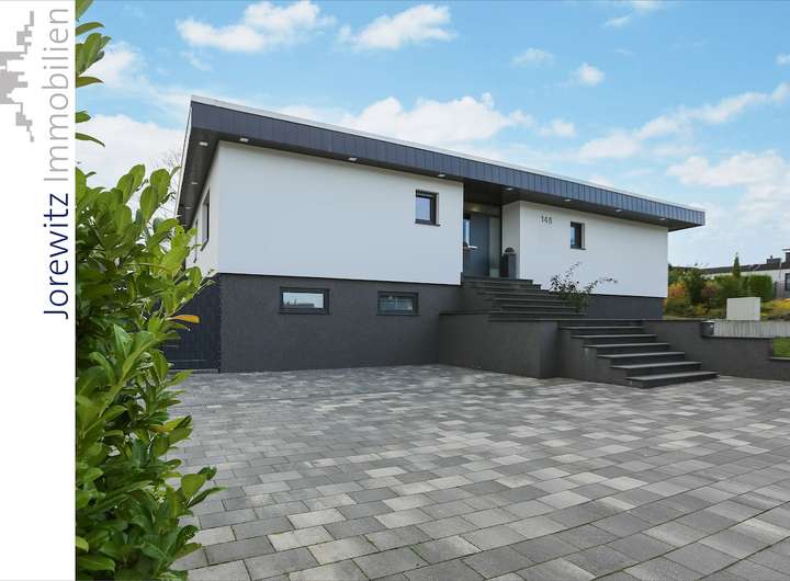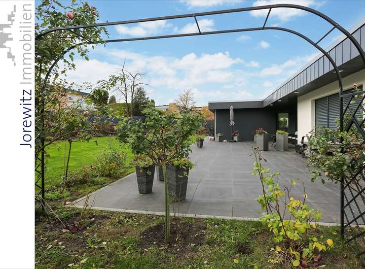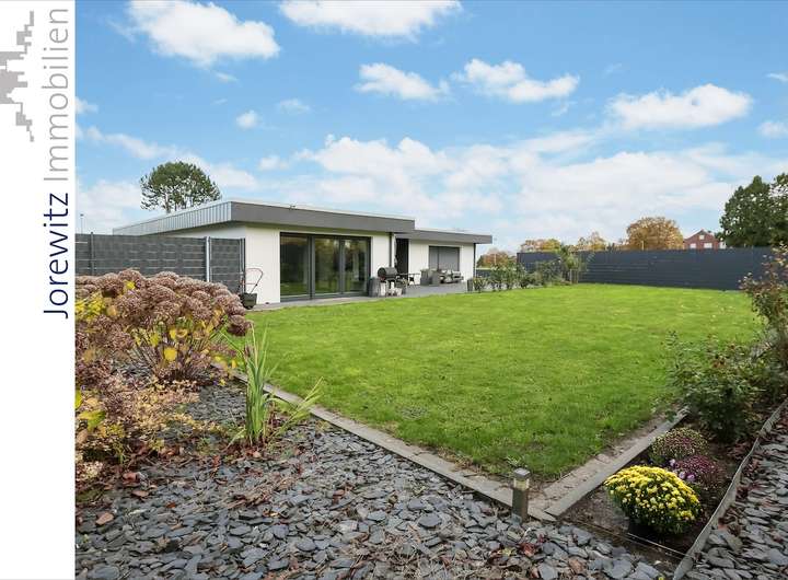 Bungalow mit 4 Zimmern, offener Küche, 2 Bädern, Gäste-WC, großem Eingangsbereich, Vollkeller, Terrasse und Garten, ca. 165 m² Wohnfläche im Erdgeschoss.