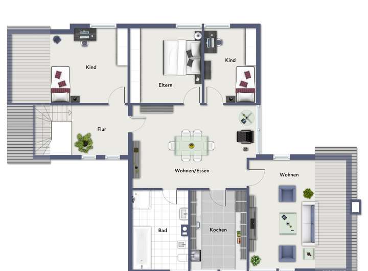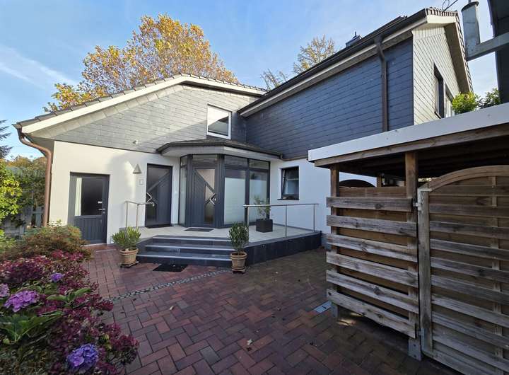 Der separate Eingang des Hauses führt direkt in die eigenständige Wohnung im 1. Obergeschoss. Die Wohnung im Erdgeschoss ist zudem über einen zusätzlichen Nebeneingang zugänglich.