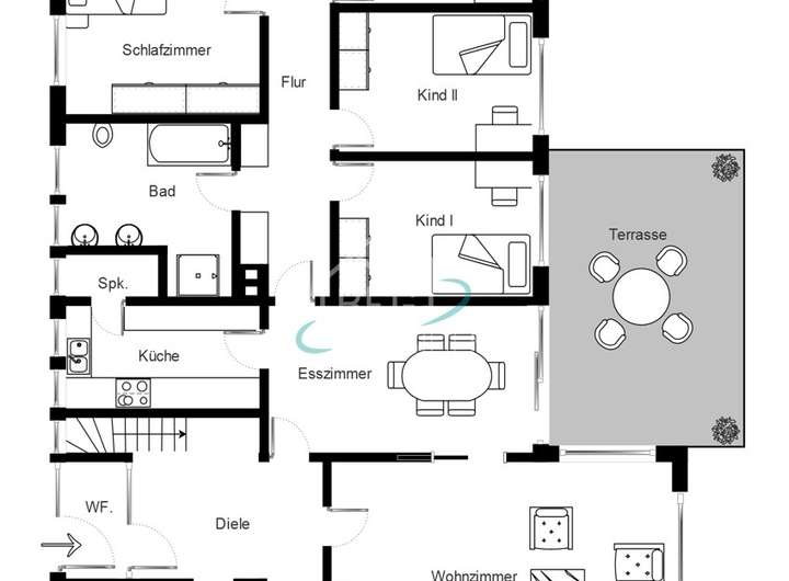 - Vier Schlaf- bzw. Kinderzimmer im privaten Bereich des Erdgeschosses