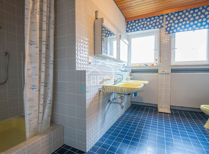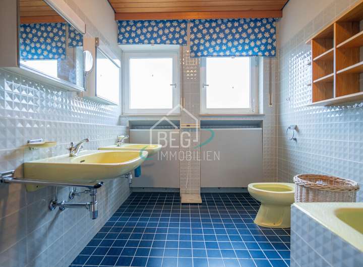 - Ausgebauter Kellerbereich mit zwei beheizten, wohnlich nutzbaren Räumen (ca. 14 m² und ca. 34 m²) sowie eigenem Bad