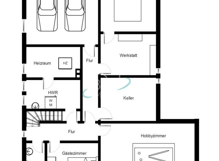 - Doppelgarage mit elektrischem Sektionaltor und direktem Zugang ins Haus