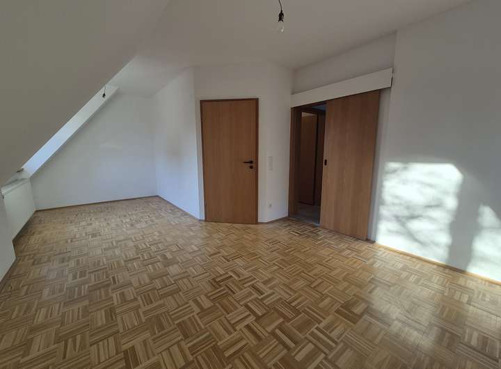 Der begehbare nicht ausgebaute Spitzboden bietet viel zusätzliche Staufläche.